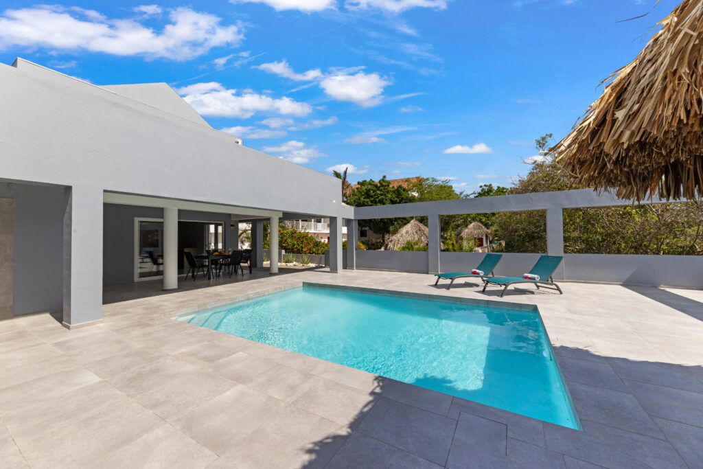 De woning heeft een privézwembad, een groene tuin en diverse gezellige zithoeken om heerlijk te ontspannen.